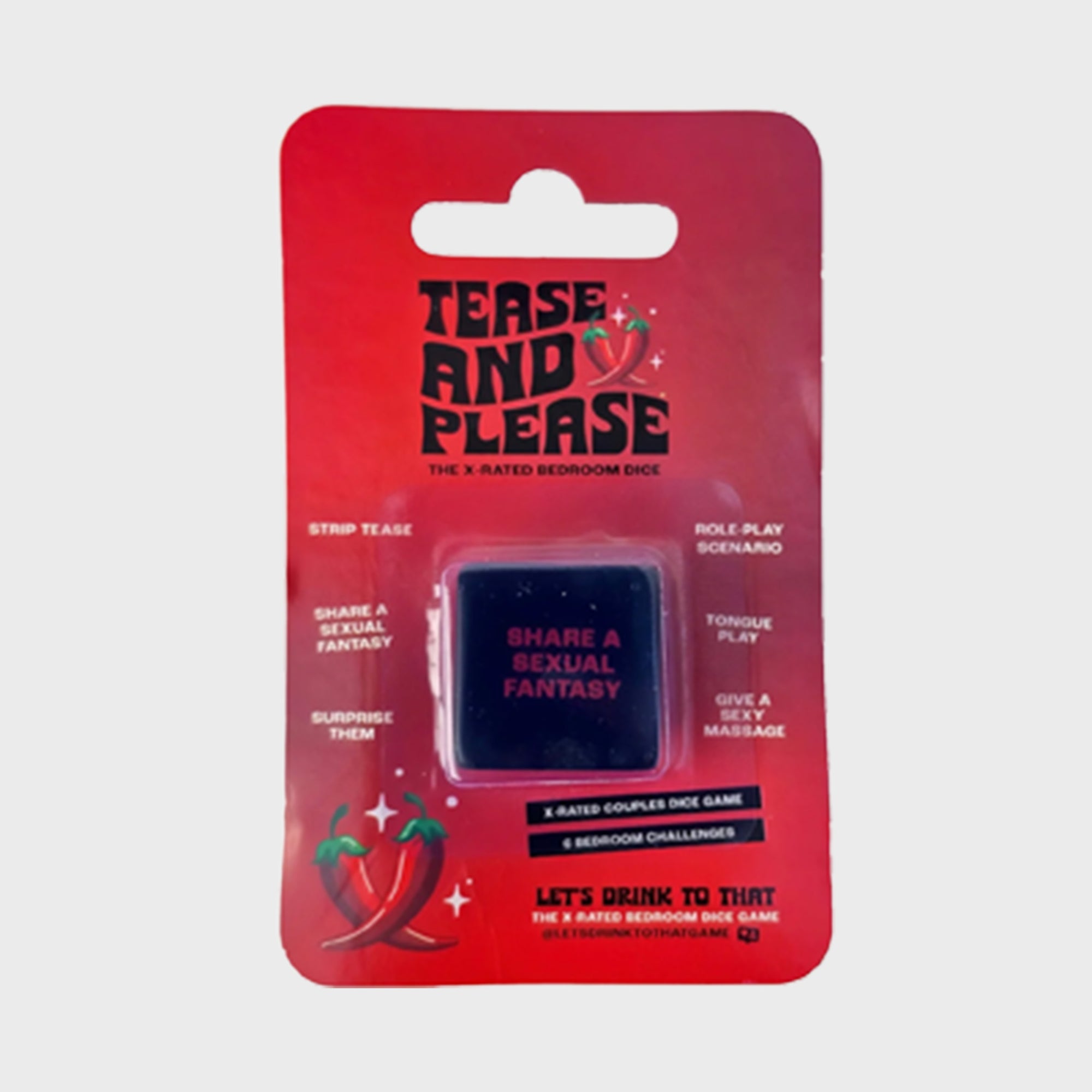 • Spice up your night with the Tease and Please Dice Game! This naughty game is sure to bring out your boldest sexual fantasies and naughtiest desires - and make them come to life. 6 bedroom commands for you and your partner to enjoy. Ready to roll?