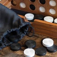Includes deluxe wooden board, 42 wooden playing pieces, cotton bag & game guide.