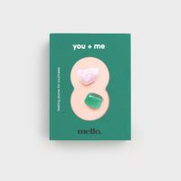 Treasure a lifelong partnership with Rose Quartz and Green Aventurine, combining to stimulate the heart chakra. A stone for you and a stone to gift to your soulmate to carry with you as a symbol of your endless connection, whether near or far. Includes two bags to keep your stones safe.