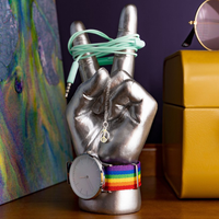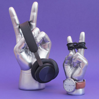 If you've loved our Peace Out Headphone Stand, hold onto your harem pants and get ready for the Peace Out Mini jewellery stand and trinket holder. Send a message of peace, love, and home organisation! Hang your grooviest necklaces & rings onto the peace out fingers and get ready to vibe out. Or even wrap around a watch or bracelet on the wrist and never lose your funky accessories again.