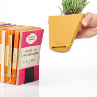 Create unique living bookends that hold your favourite novels between potted foliage - just add plants. Brighten up your bookshelf with this clever two-part planter. The waterproof bookends appear to be one traditional style plant-pot, cut in half. Two metal L-plates discreetly support the books and hold the planters in place, so they won't fall over or spill any soil. When your plants get thirsty, simply slide the pot up from the metal base for mess-free watering. The best gift for book-smart botanists. A growing design worth reading about, by Andy Mason.