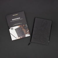 A6 premium notebook with water-resistant pages and graphite pencil.