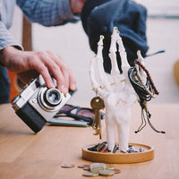 Need a helping-hand holding all your jewellery? Skeleton Hand will keep all your rings and bangles organised neatly. Too many trinkets to wear all at once? Display them tidily on these bony fingers. The metal joints move independently so you can pose the hand to best show off your treasures. And if you have even more jewellery than Mr T, the wooden base is a tray that will look after your overspill. A great gift for your vampire friends.