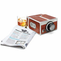Smartphone Projector 2.0 comes with a soft matt laminate finish and silver foil accents and makes the perfect gift for any gadget lover. Whether it's for Christmas, a birthday or just because - Smartphone Projector 2.0 is a fun gift any time of year! Designed with sophistication in mind, 2.0 has brown leather print detail, inspired by range finder cameras, leather hip flasks and Cuban cigar lounges.